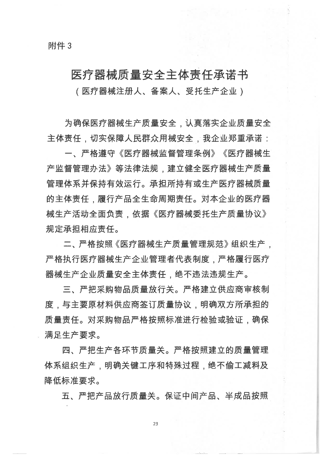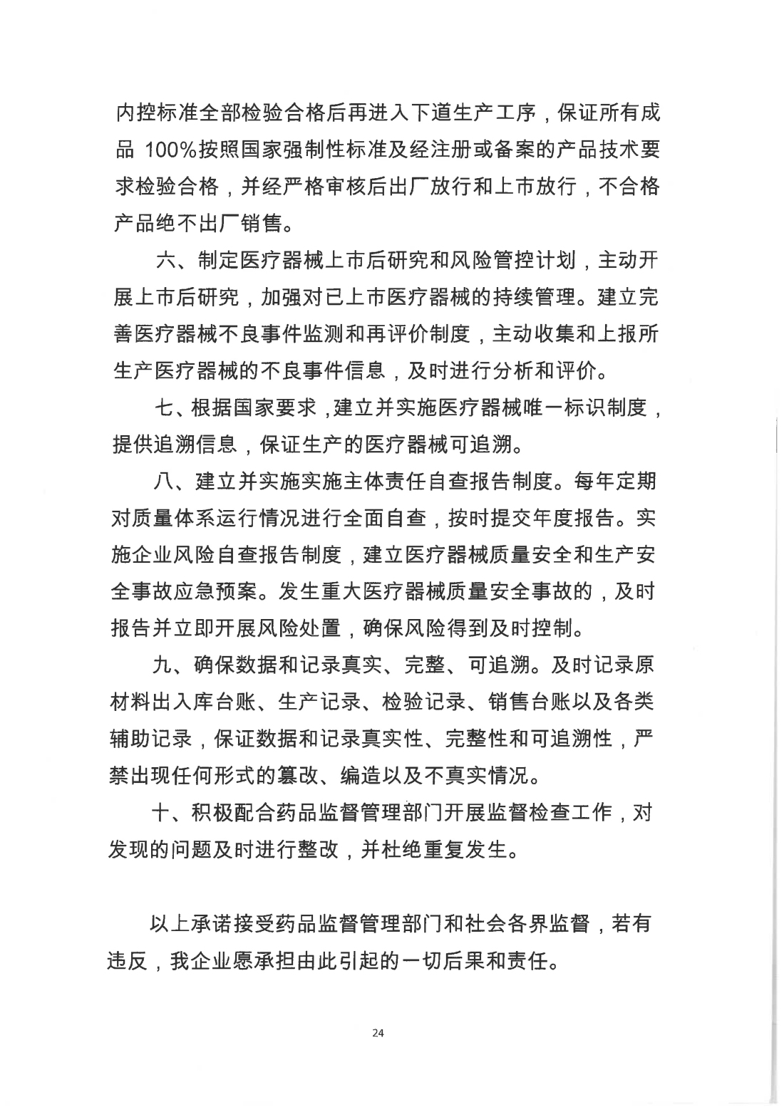 醫(yī)療器械質量安全主體責任承諾書